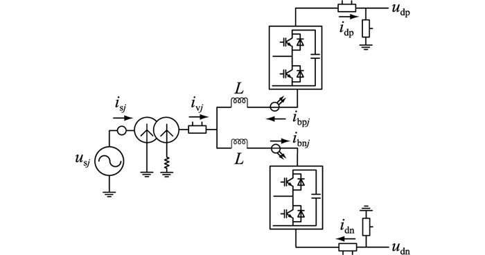 | $\left\{\begin{array}{l} L_{\mathrm{eq}} \frac{\mathrm{d} i_{\mathrm{sa}}(t)}{\mathrm{d} t}=u_{\mathrm{sa}}(t)-u_{\mathrm{va}}(t) \\ L_{\mathrm{eq}} \frac{\mathrm{d} i_{\mathrm{sb}}(t)}{\mathrm{d} t}=u_{\mathrm{sb}}(t)-u_{\mathrm{vb}}(t) \\ L_{\mathrm{eq}} \frac{\mathrm{d} i_{\mathrm{sc}}(t)}{\mathrm{d} t}=u_{\mathrm{sc}}(t)-u_{\mathrm{vc}}(t) \end{array}\right. $ | (1) |