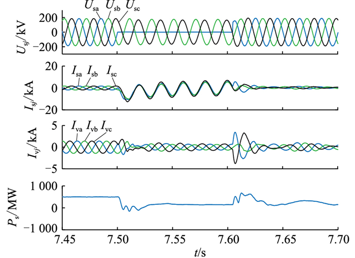 图 10 整流侧网侧单相接地故障仿真结果 Fig. 10 Simulation results of single-phase grounding fault on the rectifier side |