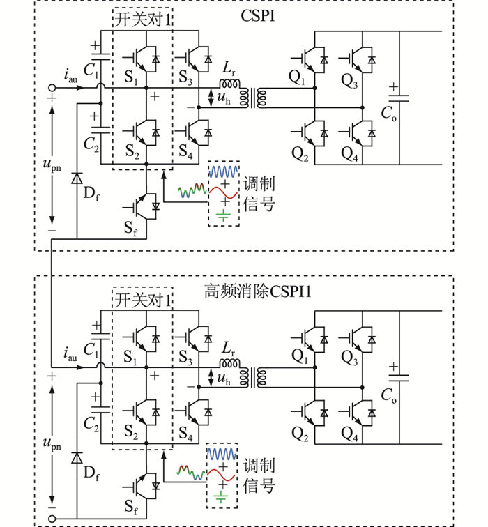 2.2 CSPI混频调制在MMC-SST正常工作时,MMC端口要连接低频的交流电网,而DAB端口要连接高频变压器,开关对1的调制信号中需要同时包含高频分量和低频分量。因此须消除开关对1中高频信号对MMC端口的影响以及低频信号对DAB端口的影响。