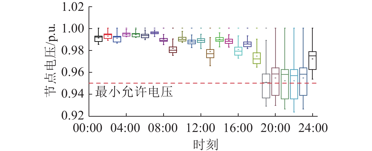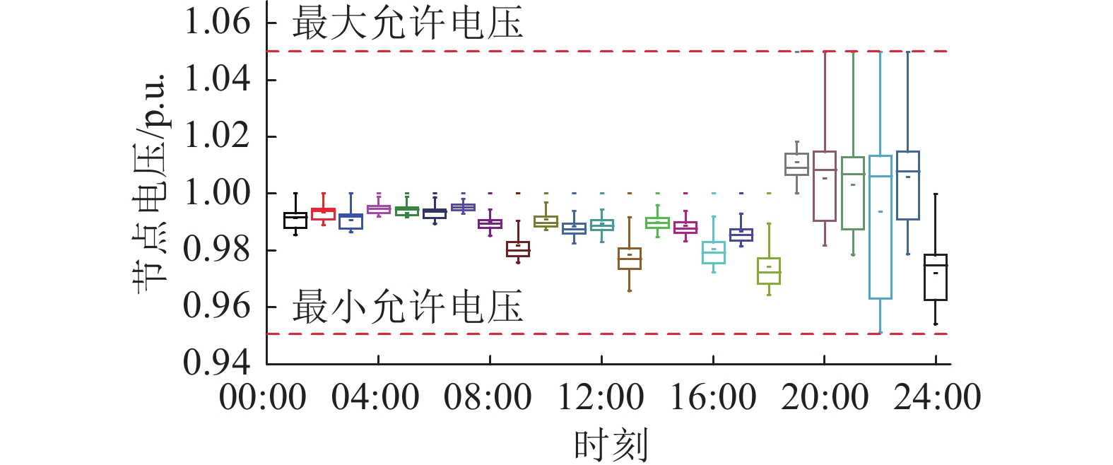 图 13 日前控制下节点电压的分布箱型图 Fig. 13 Boxplot of node voltage distribution under day-ahead control |
