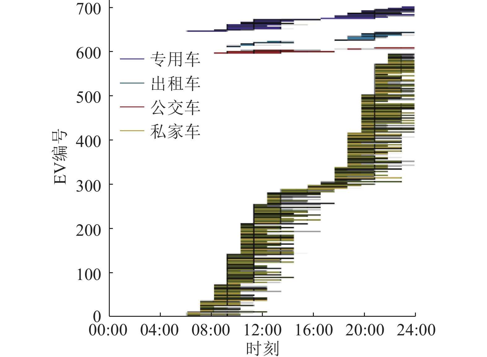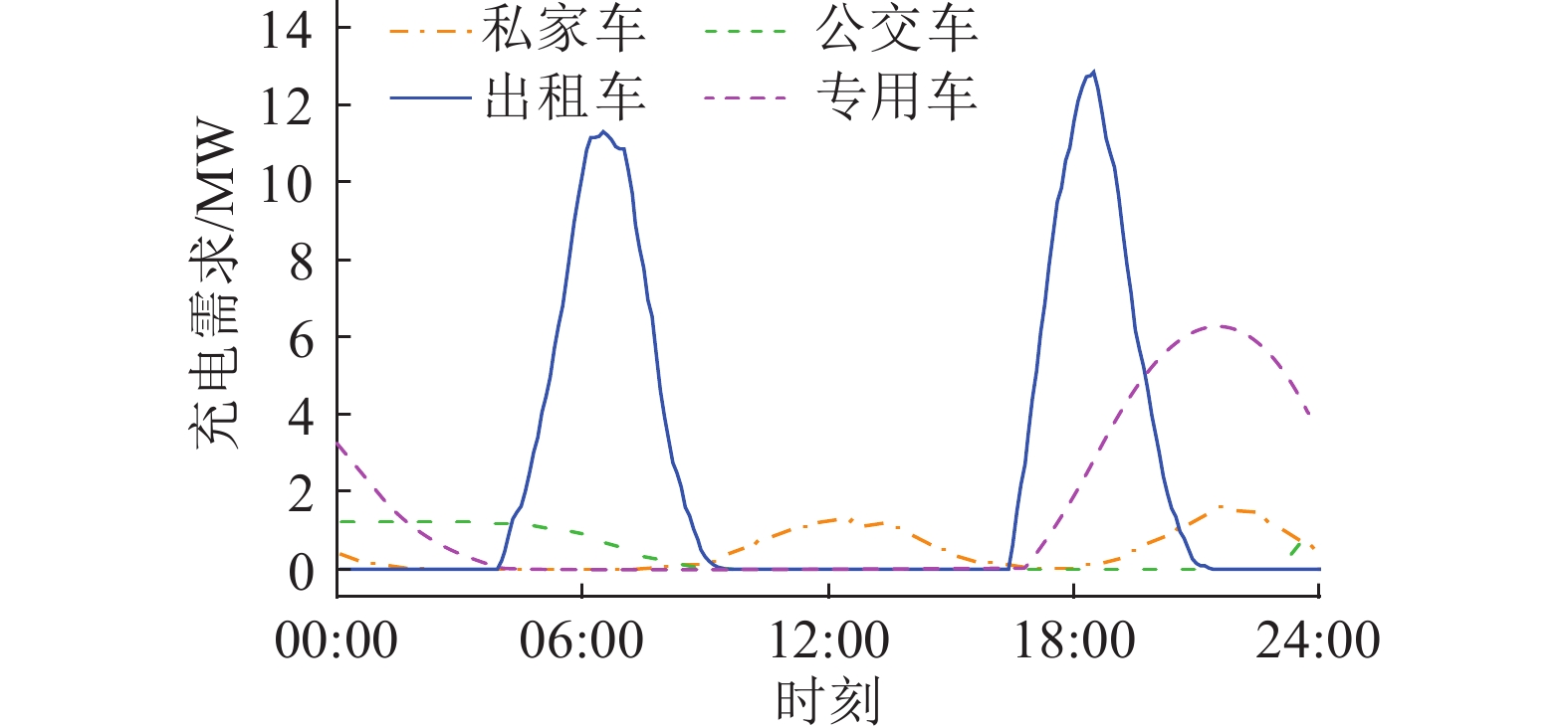 图 4 不同类型的EV集群的充电需求曲线 Fig. 4 Charging demand profiles of different types of EVs |