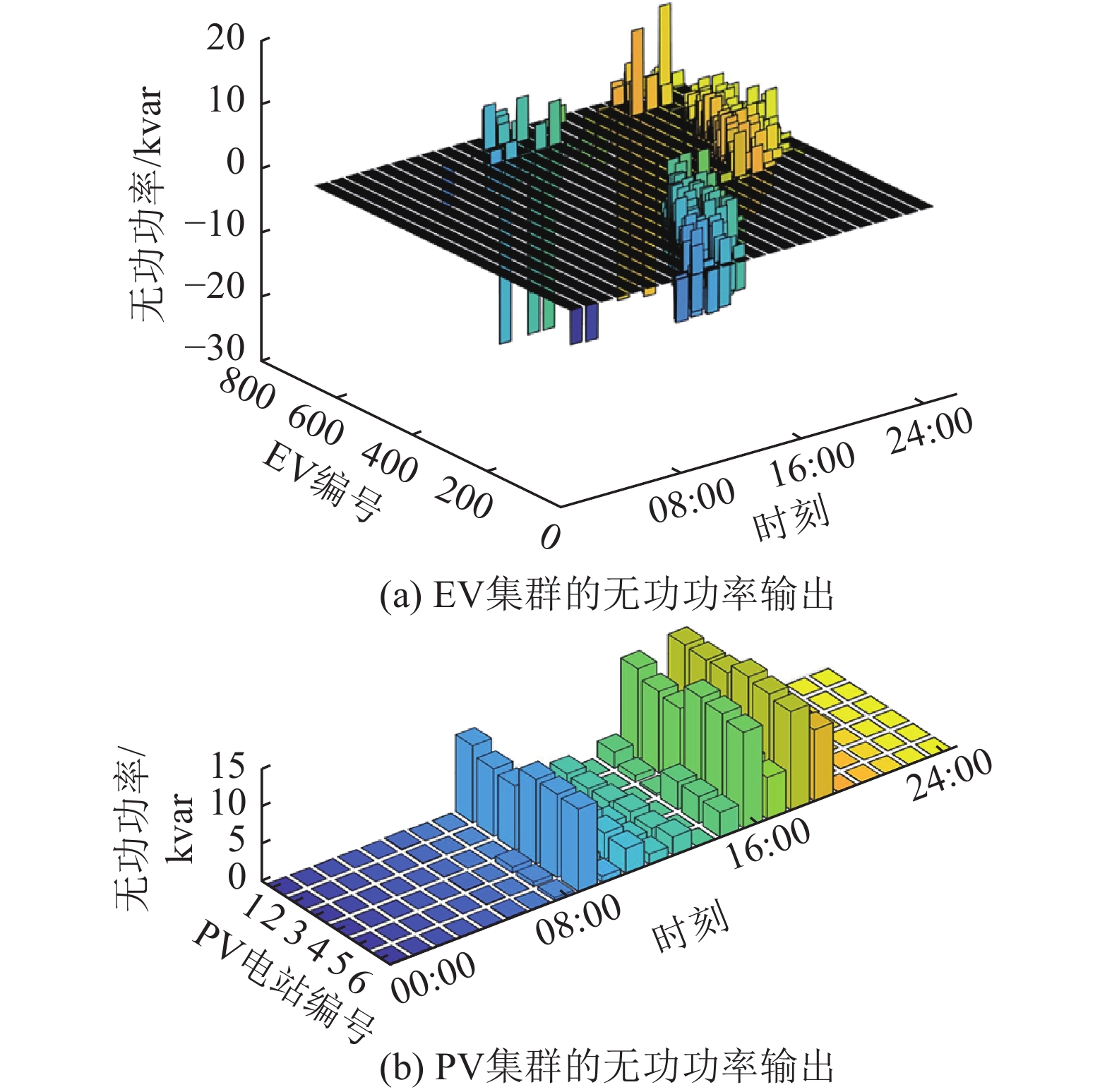 图 17 日内控制下EV和PV集群的无功功率输出 Fig. 17 The reactive power output of EV and PV clusters under intraday control |