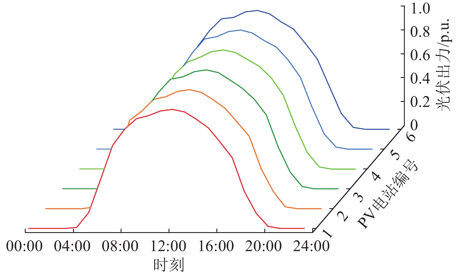 图 9 6个PV电站的出力曲线 Fig. 9 Output profiles of six PV power stations |