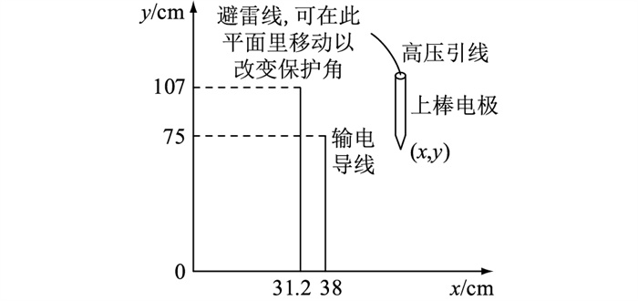 1 雷电附着试验试验选用1 ∶40的缩比模型降低放电分散性的影响[22],对典型500 kV输电线路的雷电绕击特性展开模拟试验,分别研究绕击特性在空间上的分布特征以及杆塔保护角对输电线路绕击特性的影响。